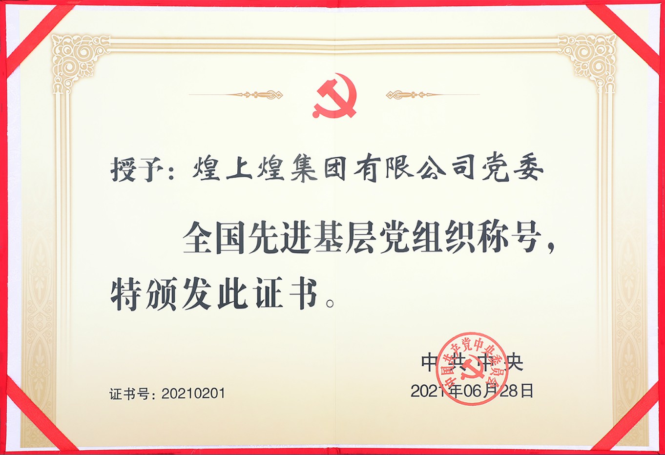 2021年,煌上煌集團(tuán)黨委被中共中央授予“全國先進(jìn)基層黨組織”榮譽(yù)稱號(hào)。