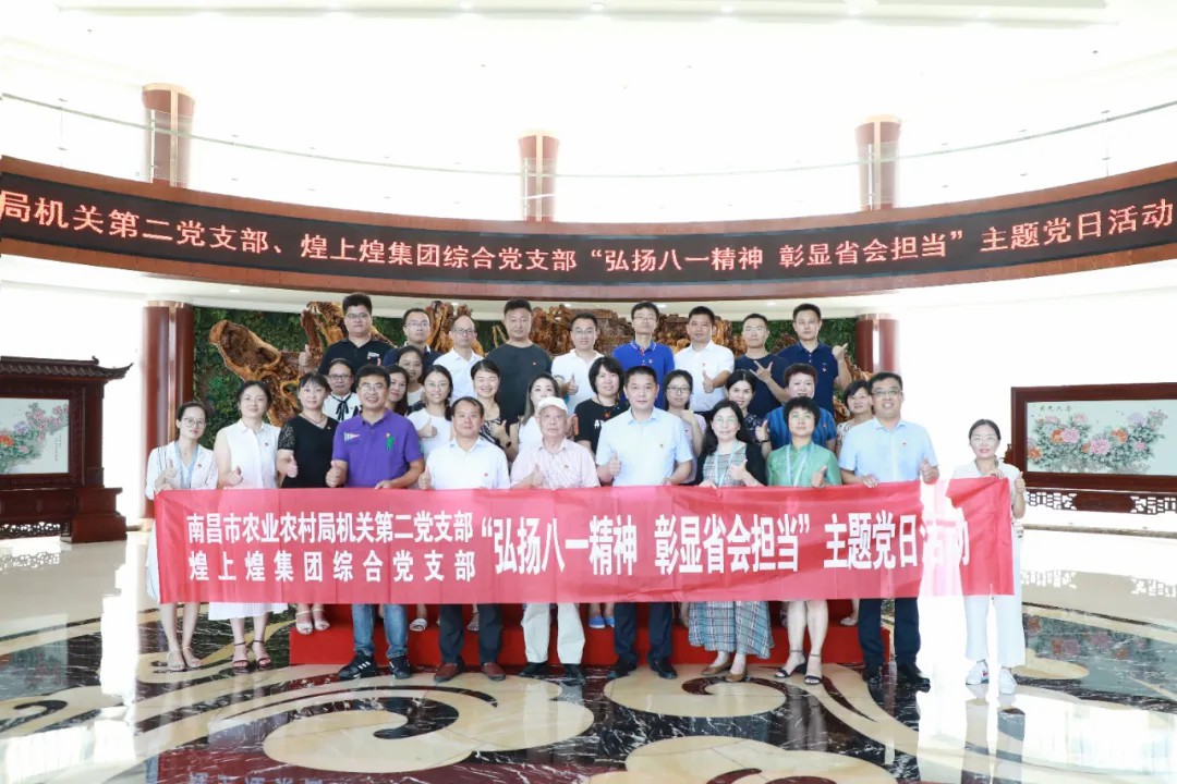 8月14日,南昌市農(nóng)業(yè)農(nóng)村局機(jī)關(guān)第二黨支部與煌上煌集團(tuán)綜合黨支部開展“弘揚(yáng)八一精神、彰顯省會擔(dān)當(dāng)”主題黨日活動。